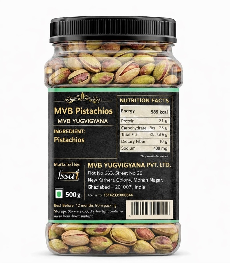 Retail Packing 500 g, Bulk packing10 kg available MVB Pistachios: The Ideal Snack for Any Time