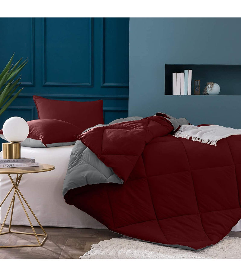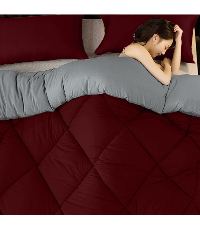 The reversible color scheme features a rich Maroon and Grey combination, adding a touch of elegance and versatility to your bedroom decor.