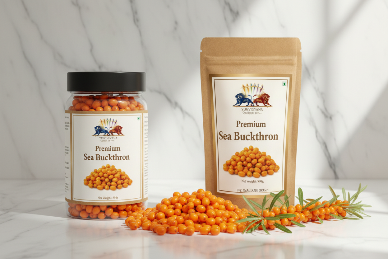 Sea Buckthorn: India's Most Underrated Golden Superfruit (And Why You Need It Now) Published: March 2026 | Reading Time: 6 min | Category: Superfoods & Nutrition ⭐⭐⭐⭐⭐ Trusted by 10,000+ health-conscious families across India What Is Sea Buckthorn? Hidden in the cold Himalayan valleys of Ladakh, Himachal Pradesh, and Uttarakhand grows one of nature's most powerful superfruits — Sea Buckthorn (Hippophae rhamnoides). Known locally as "Leh Berry" or "Amla of the Mountains," these tiny bright-orange berries pack an extraordinary nutritional punch that modern science is only beginning to fully appreciate. At Yugvigyana, we source our Sea Buckthorn directly from high-altitude Himalayan farms — handpicked at peak ripeness to preserve every drop of nutrition.