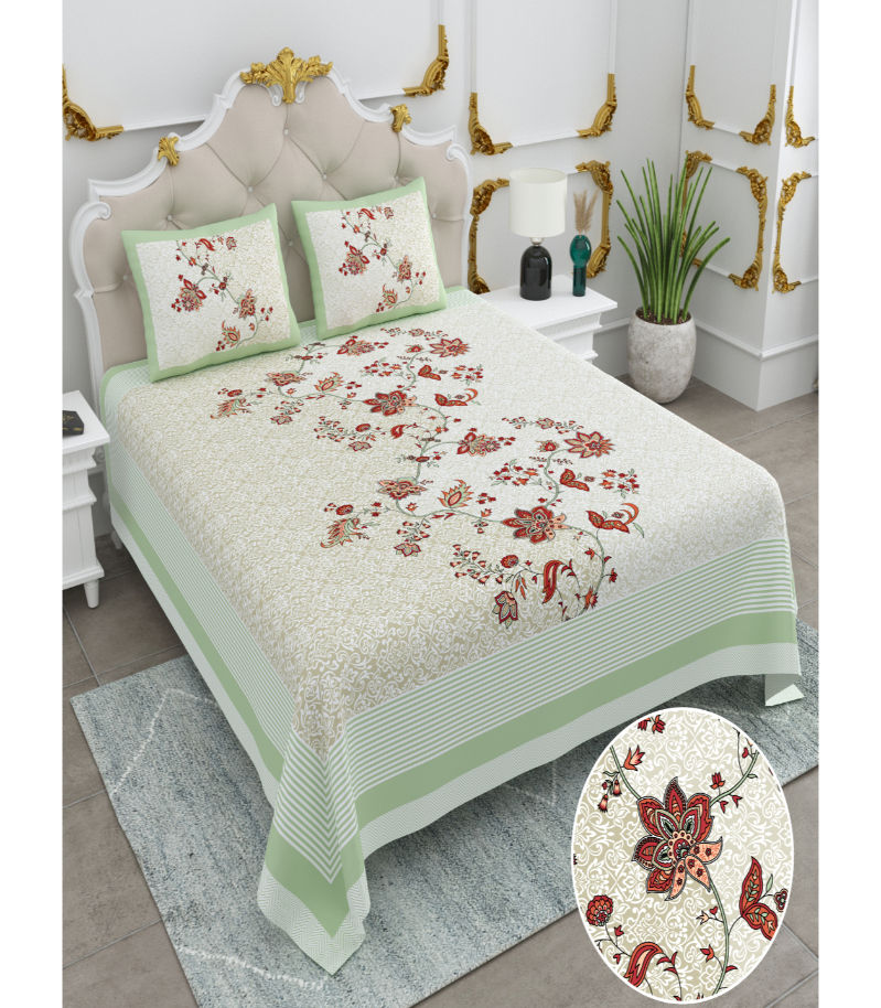 Upgrade your bedroom decor with our premium 240 TC Cotton Floral Printed Bedsheets designed especially for king-size beds.