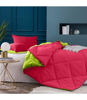 The reversible design displays vibrant Red and Lemon Green shades, adding a cheerful and refreshing look to your bedroom.