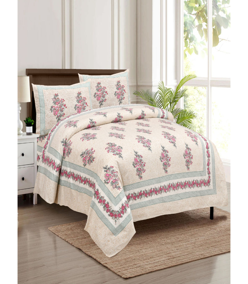 Name: Bouquet Elegance Cotton Double Bedsheet with 2 Pillow Covers