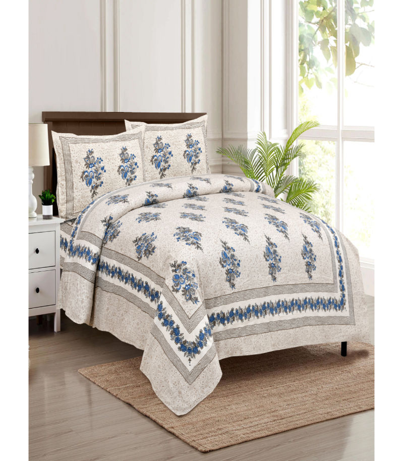 The beautiful Jaipuri floral prints in soothing pink and blue hues add a touch of timeless elegance and traditional artistry to your space.