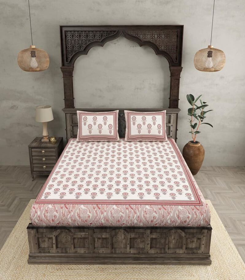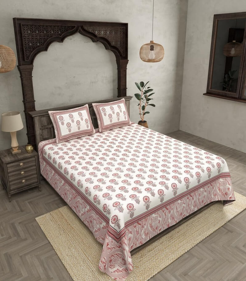 Give your bedroom the classic elegance of our Floral Block Printed Double Bedsheet Set.