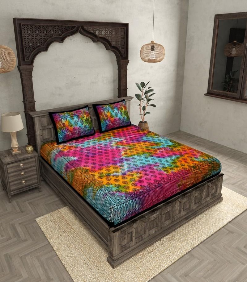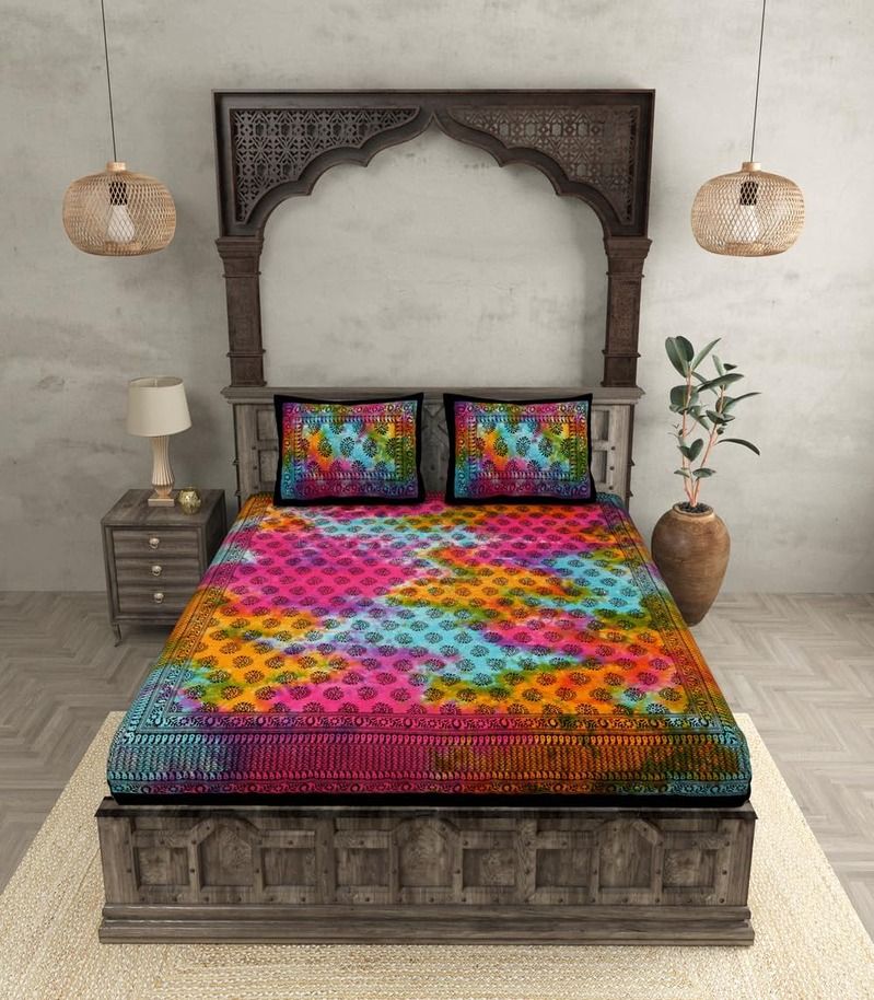Add a splash of classic artistry to your bedroom with this Tie and Dye Kerry Pattern Block Print Double Bedsheet, made of 100% premium cotton. With a rich 240 thread count, this bedsheet provides ultimate softness, strength, and comfort for a peaceful night's sleep.