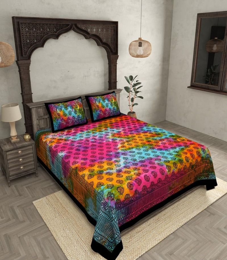 The multicolored Kerry pattern block print, which has been made by the traditional tie-and-dye method, gives a distinct and attractive look to your room.