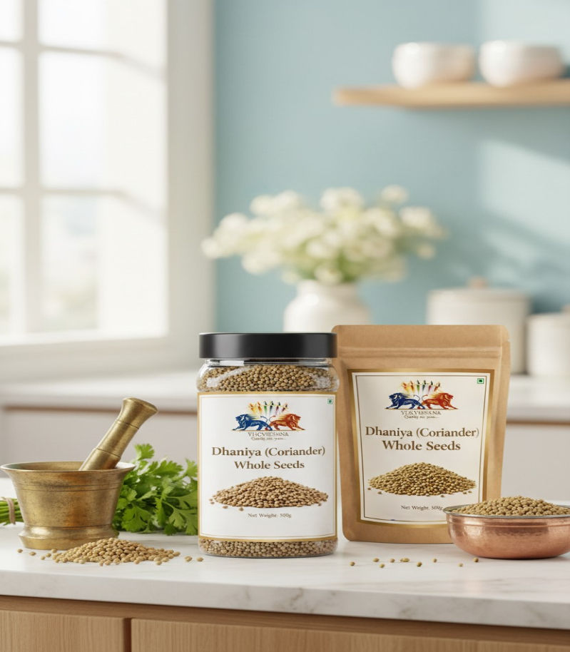 Premium whole coriander seeds - fresh, citrusy aroma for authentic Indian cooking.