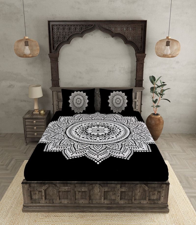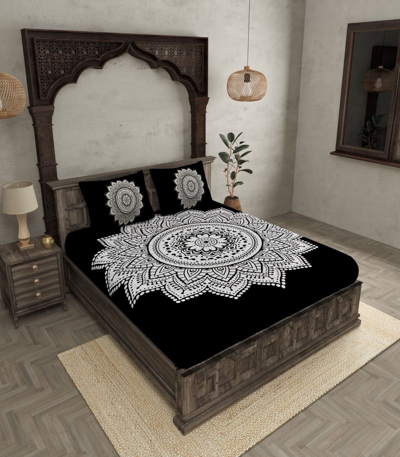 Turn your bedroom into a haven of sophistication with the Elegant Weave 210 TC Cotton Bandhej Print Bedsheet Set.