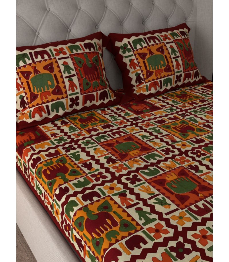 Crafted from high-quality cotton, this bedsheet features an eye-catching animal print with majestic elephant motifs, available in Blue, Multi, and Maroon color options.