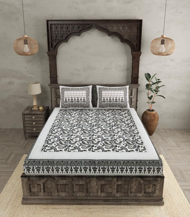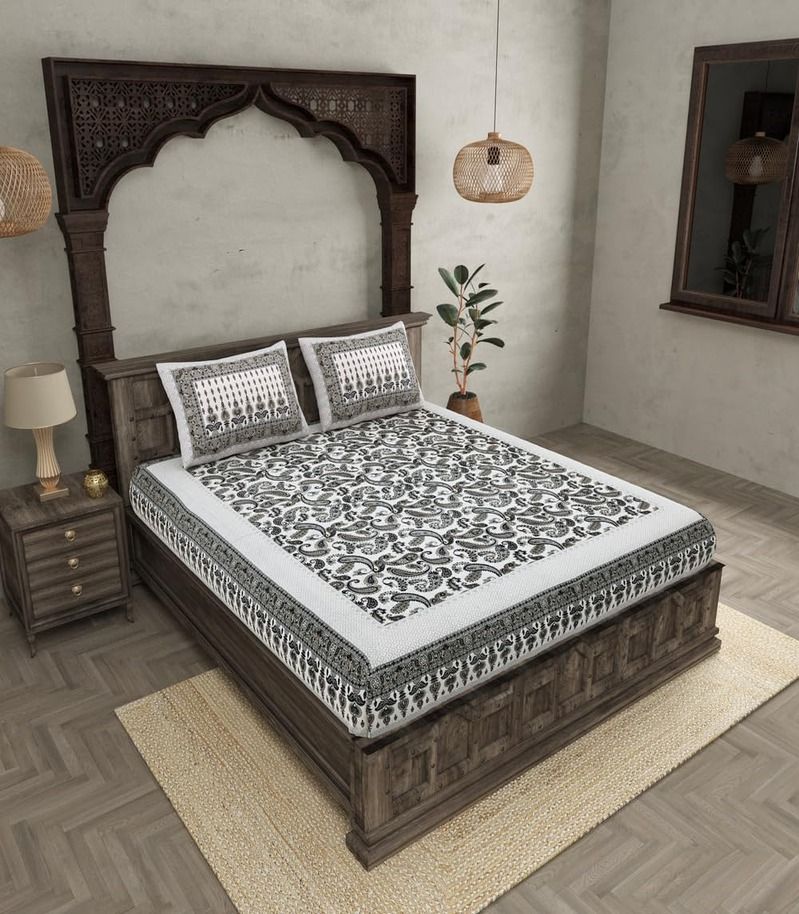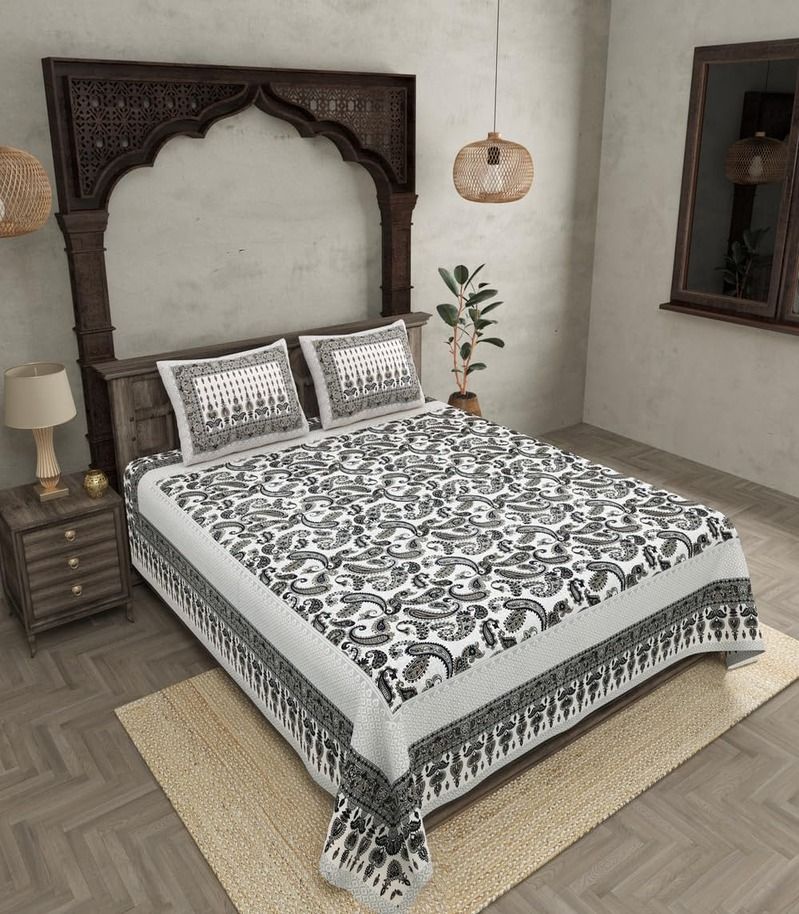 Design: Classic and elegant design Set Contains: 1 Double Bedsheet and 2 Pillow Covers