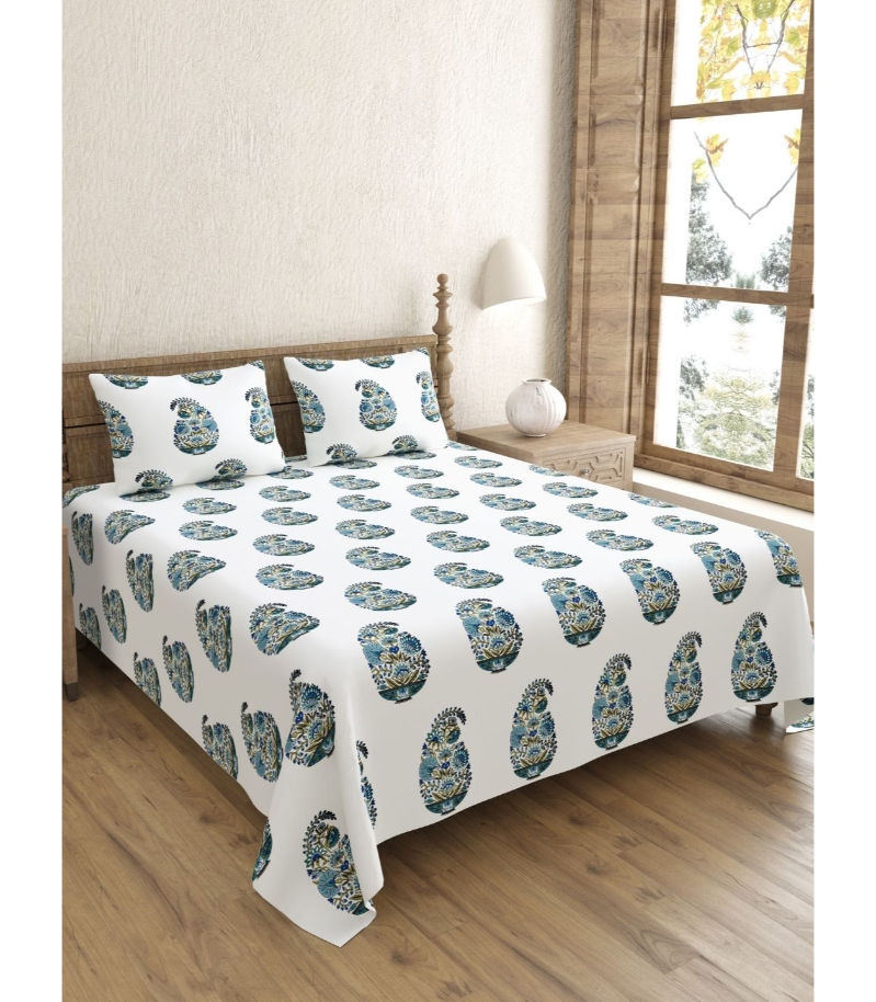 Experience the timeless beauty of traditional craftsmanship with our Floral Indian Kairi Design Pinar Block Hand Block Printed King Size Bedsheet.