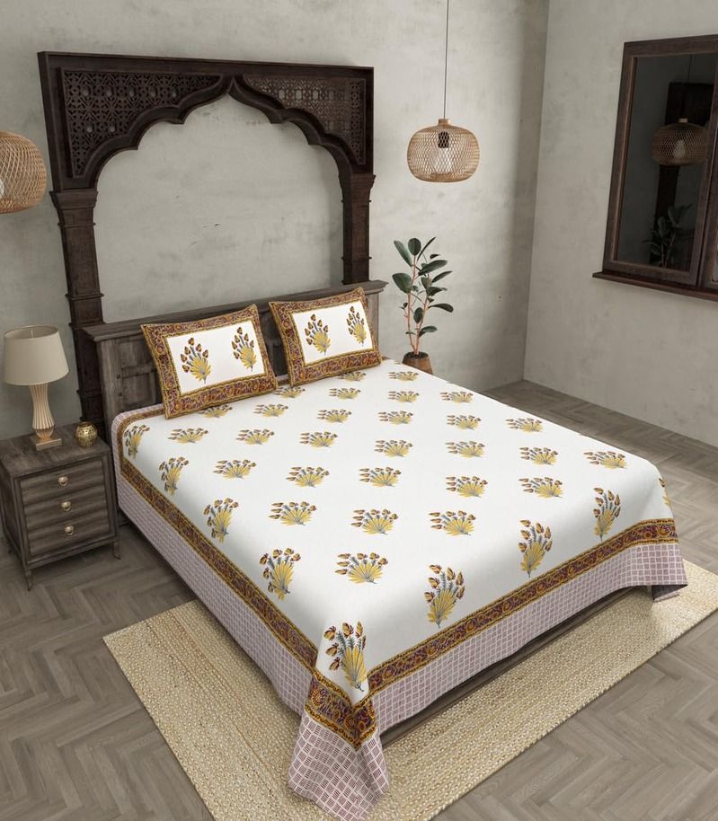 Item Name: Fortune Feathers Hand Block Bedsheet