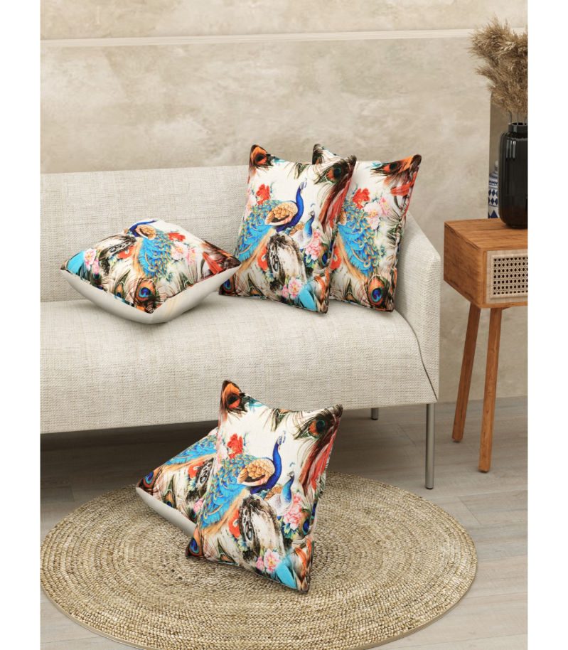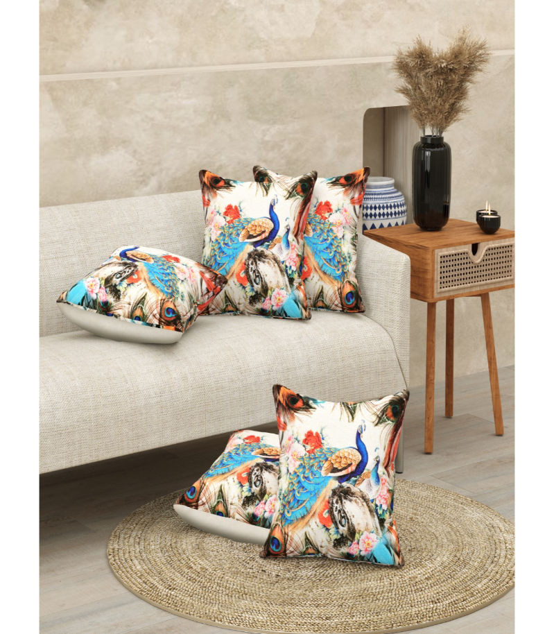Authentic Handcrafted Design Each cushion cover showcases a beautiful peacock motif, digitally printed with vibrant colors that celebrate India's rich heritage and craftsmanship.