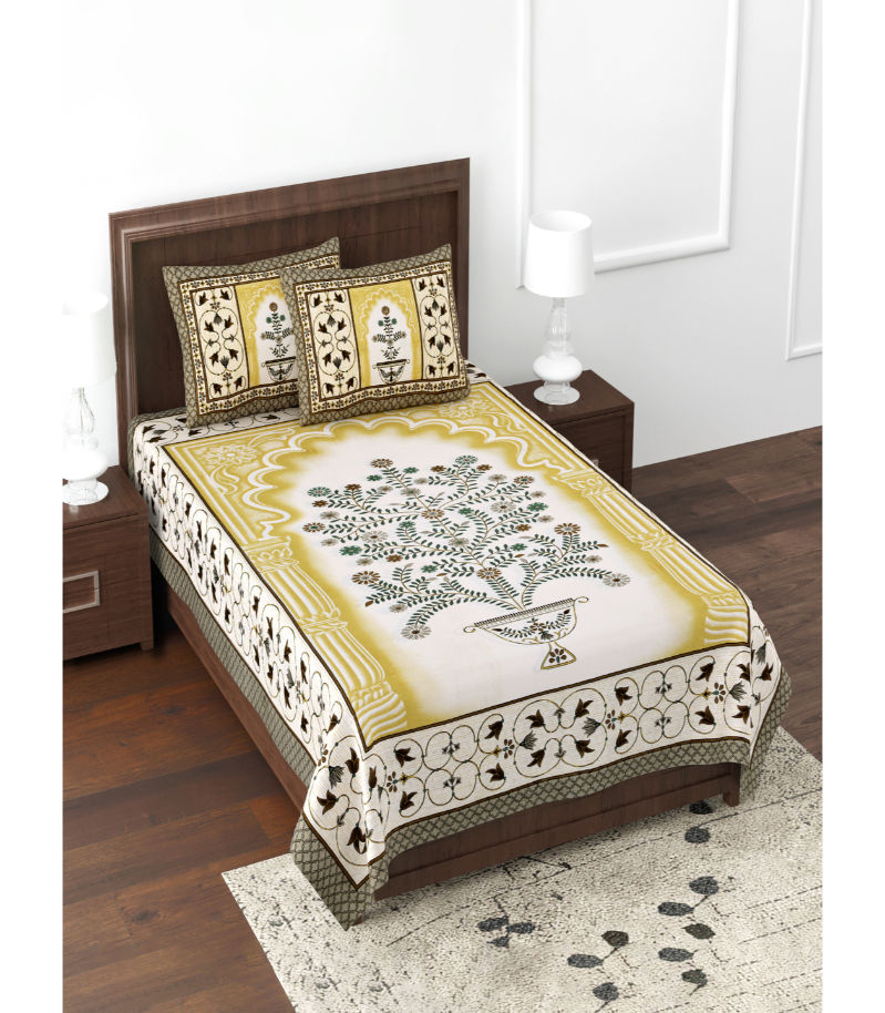 Available in three rich colour options – Multi, Yellow, and Green, this bedsheet complements all décor styles, from traditional to contemporary.