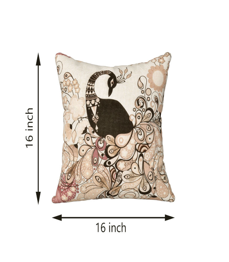 Featuring vibrant peacock digital prints on eco-friendly jute fabric, these cushion covers bring warmth and charm to your living spaces.