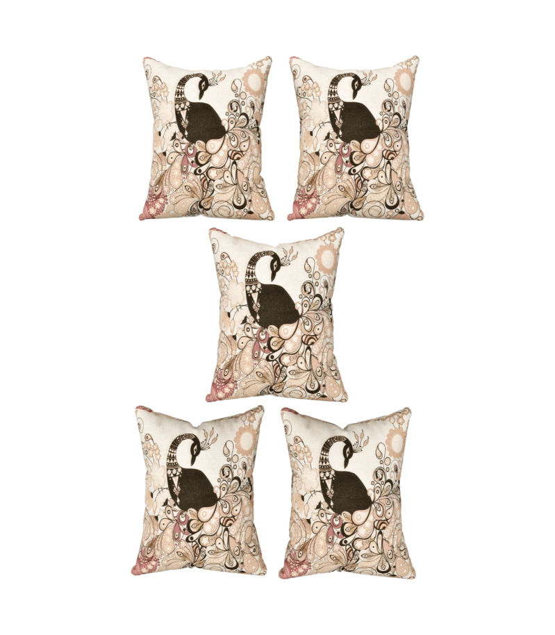 Name: Heritage Bliss Peacock Jute Pillow Covers Set of 5