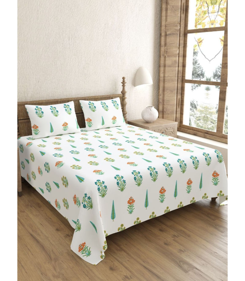 Name: Jaipur Mela Hand Block Printed Trees and Flowers King Size Bedsheet