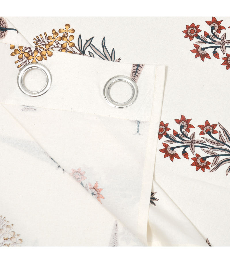 Take home the essence of Rajasthan in these stunningly handcrafted Jaipuri Boota Print Cotton Curtains, complete with a gorgeous combination of pink and mustard flowers and earth brown leaf patterns.