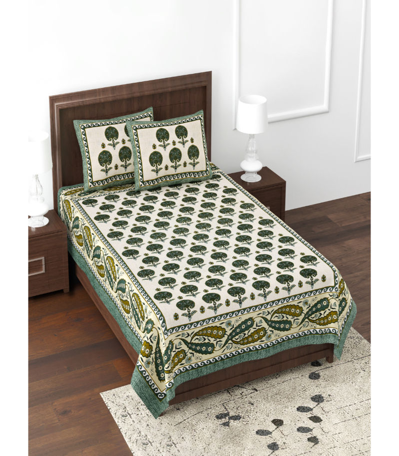 Bring nature-inspired elegance to your bedroom with the LeafLand Queen Size Cotton Bedsheet, beautifully designed in authentic Jaipuri print.
