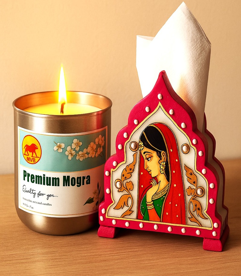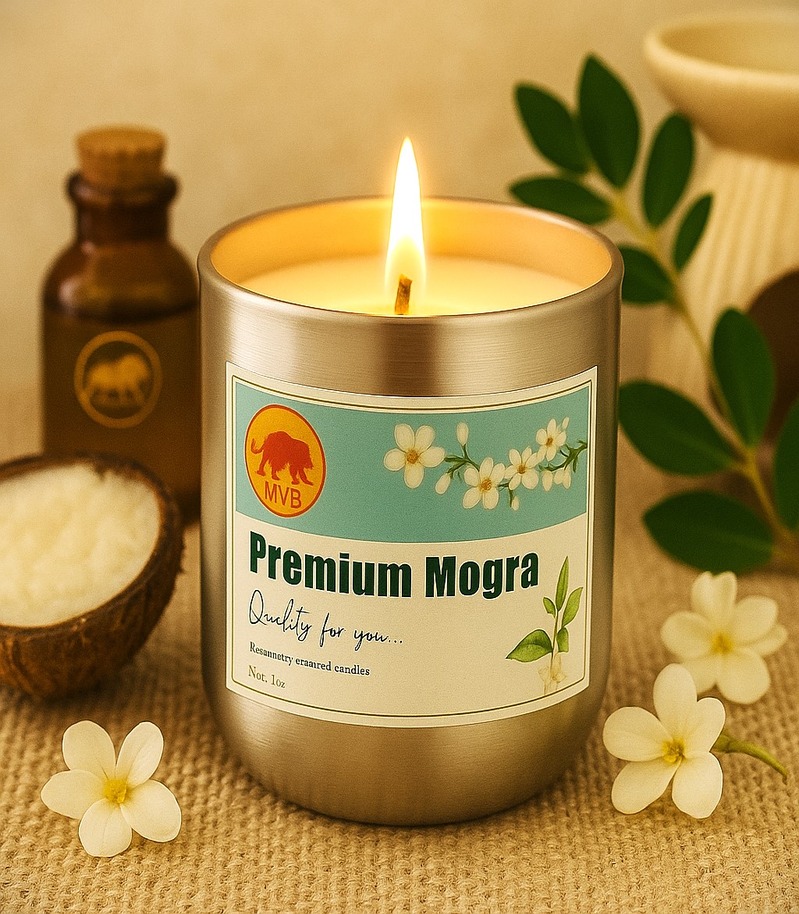 *Turn your home into a haven of peace and elegance with MVB's Hand-Poured Mogra Soya Wax Candle.