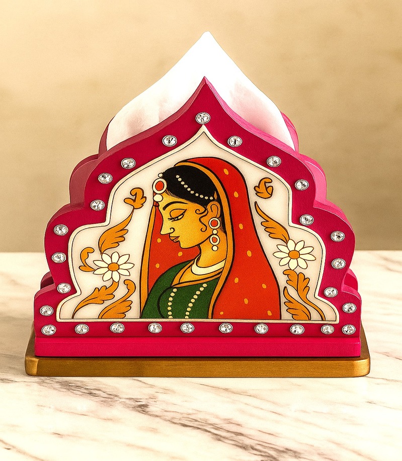 MVB Marble Mehrab Design Ladies Bani Thani Painting Napkin Holder Set – A Work of Art & Practicality