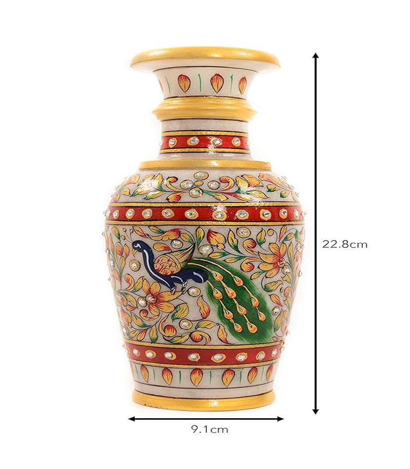 MVB Marble Peacock Design Flower Vase – 9-Inch Regal Elegance Elevate your space with the MVB Marble Peacock Design Flower Vase, a 9-inch work of art that adds royal sophistication and charm to any environment.