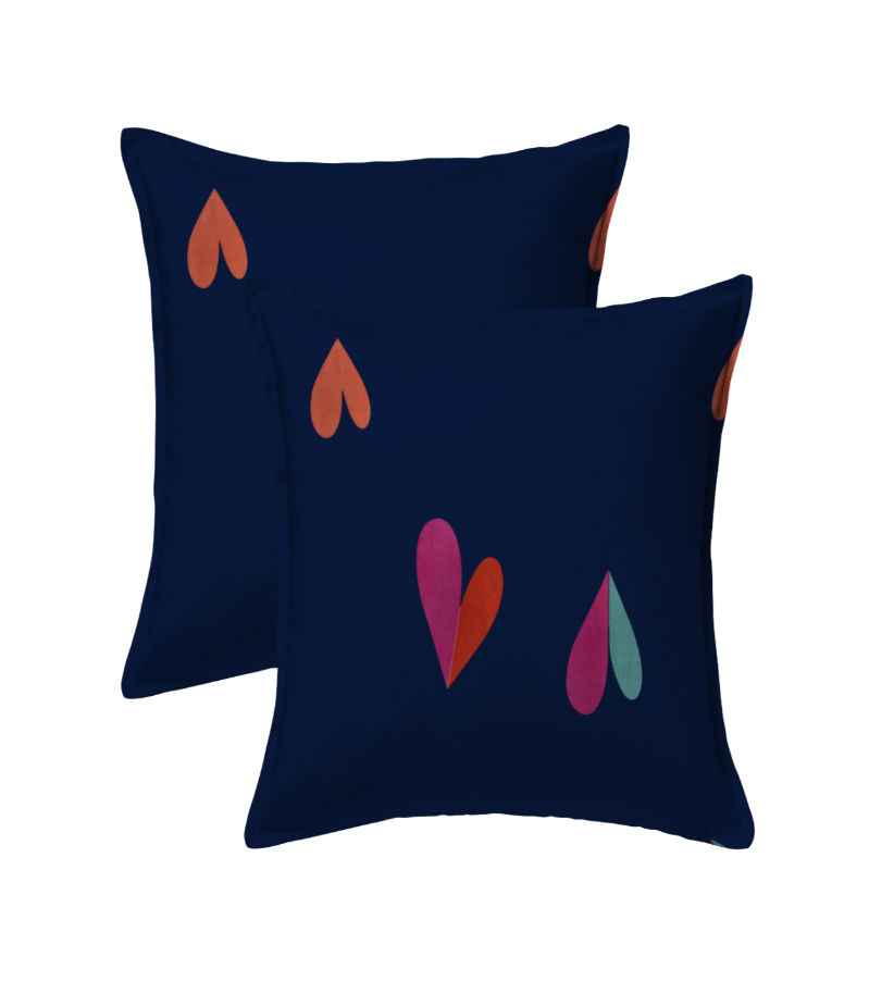 Add a vibrant and playful touch to your bedroom with the Navy Blue Shade with Multicolored Hearts Design Double Bedsheet.