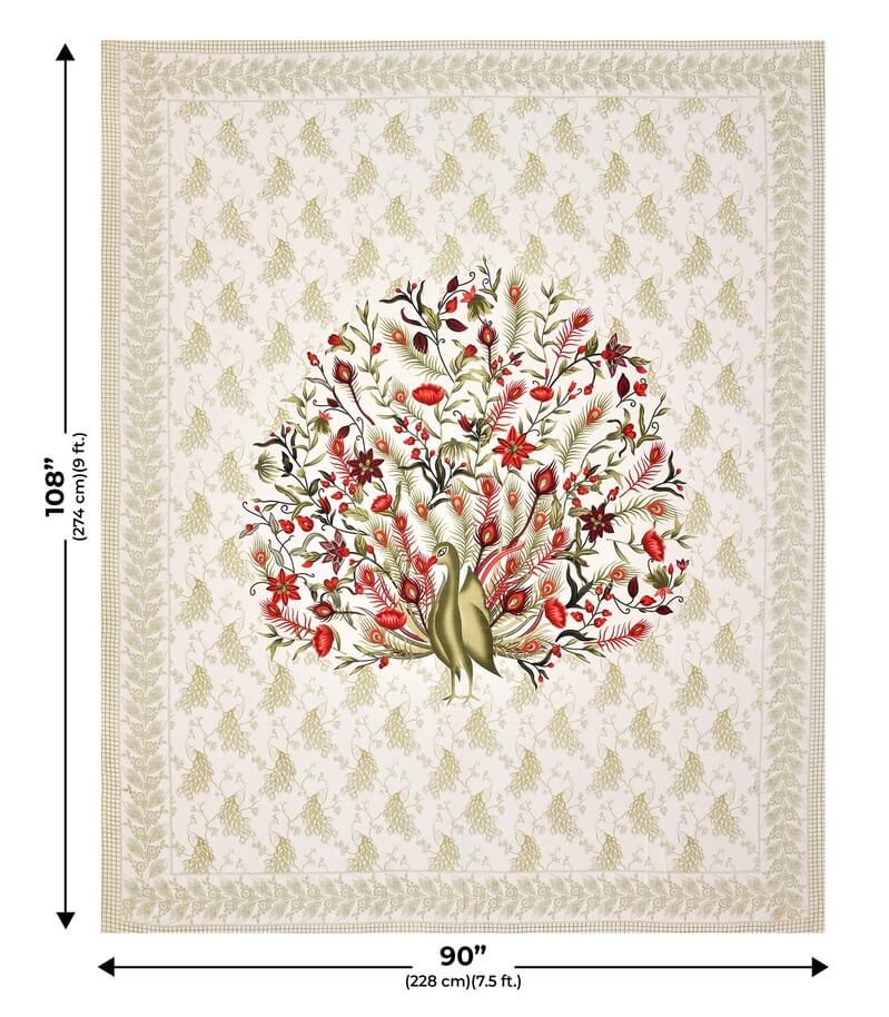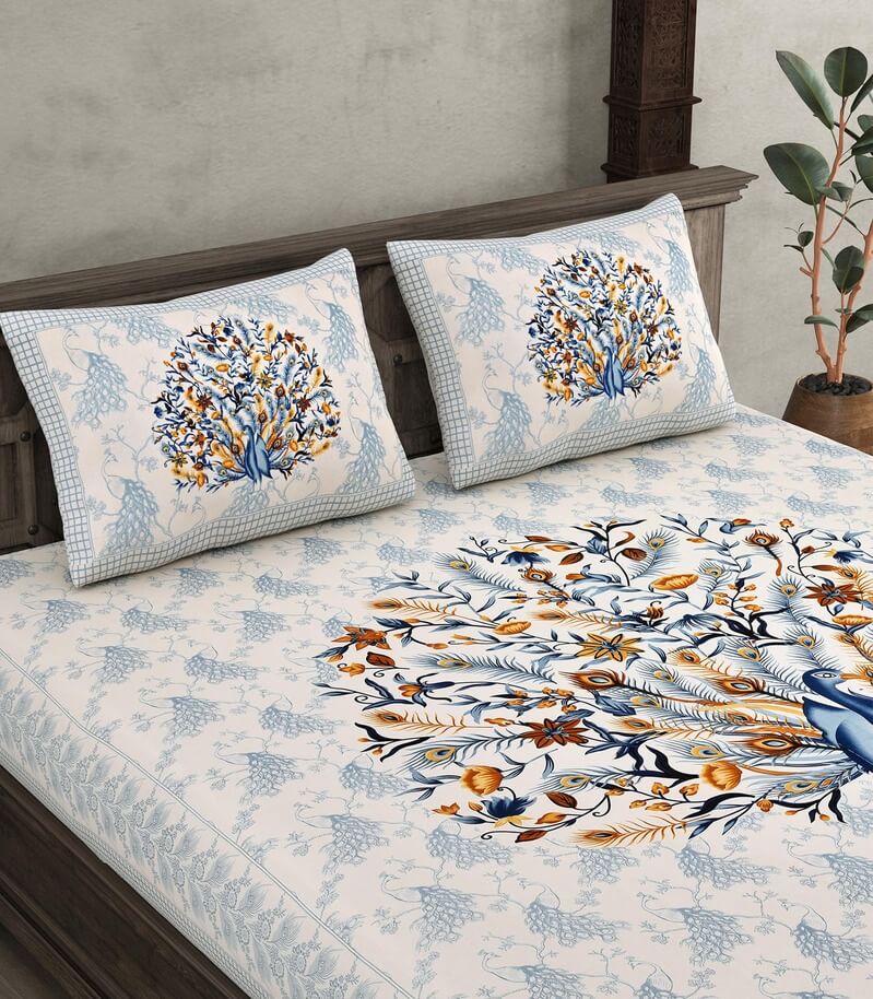 Take home a piece of Rajasthan's royal craftsmanship 180 TC 100% Cotton Jaipuri Peacock Printed Bedsheet.