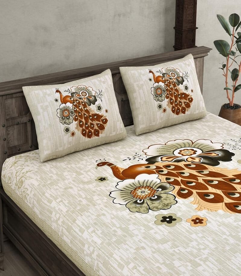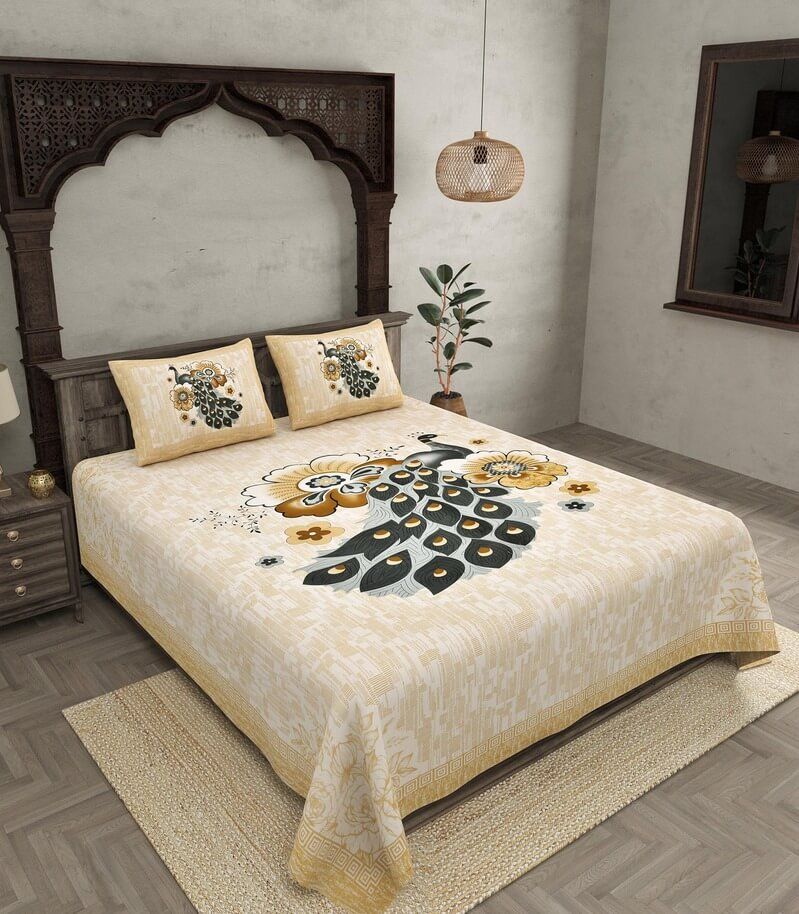Take home a piece of Rajasthan's royal craftsmanship 180 TC 100% Cotton Jaipuri Peacock Printed Bedsheet.