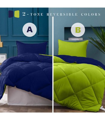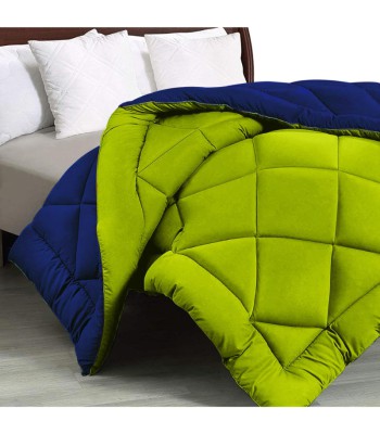 microfiber comforter double bed, 300 GSM AC comforter, reversible winter quilt, navy blue lemon green blanket, soft microfiber duvet, double bed winter comforter, lightweight bed quilt, warm reversible blanket, microfiber bedding set, AC room comforter