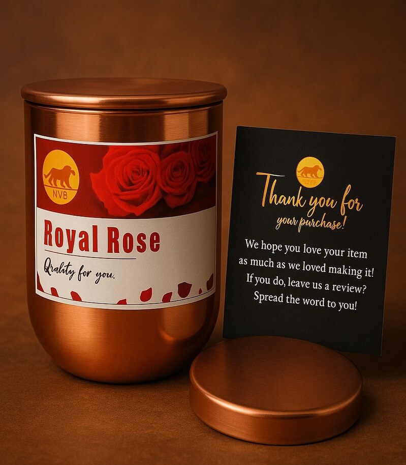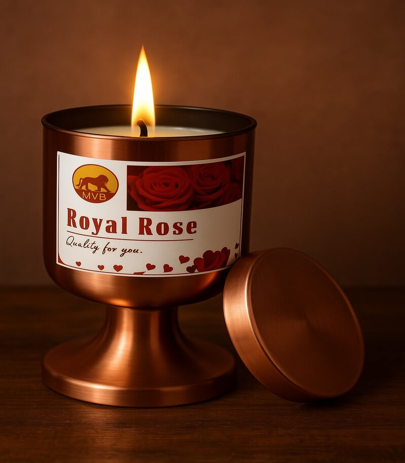 MVB Vegan Organic Hand-Poured Pure Soya Wax Candle – Rose in a Copper Metal Luxury Jar