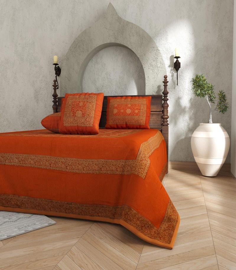 Crafted from high-quality silk and embellished with detailed zari work, this bedsheet exudes opulence and cultural heritage.