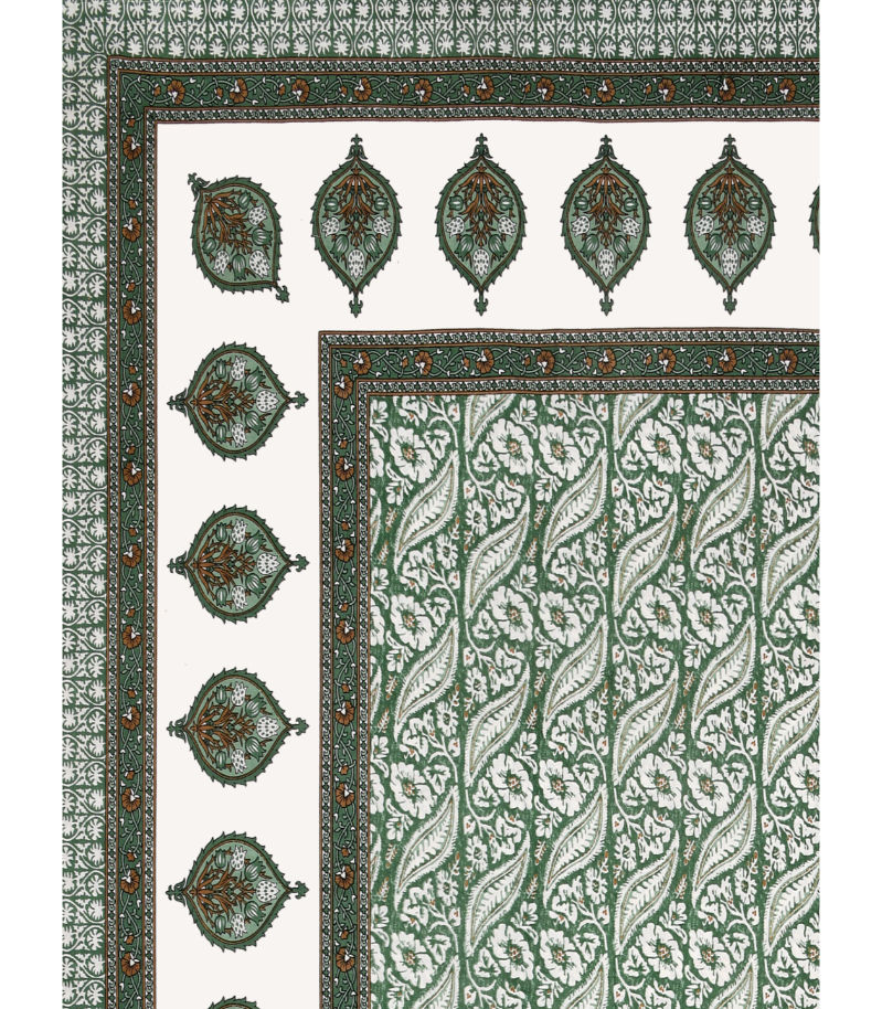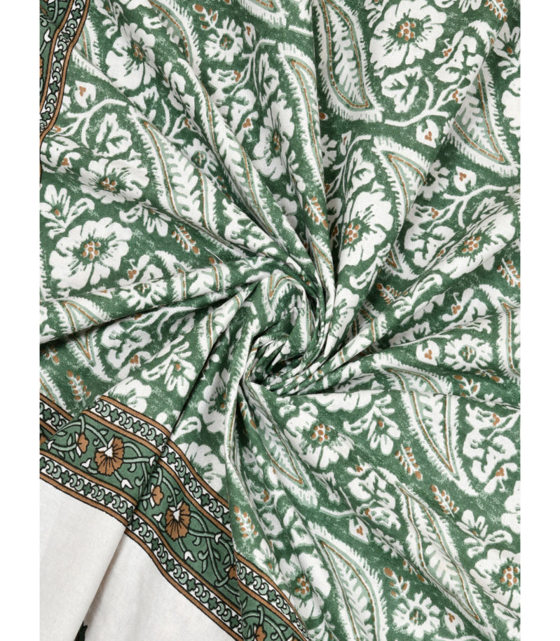 Made from 100% pure cotton, this bedsheet features authentic Jaipuri block print designs in soothing green tones that bring a touch of nature-inspired elegance to your decor. T