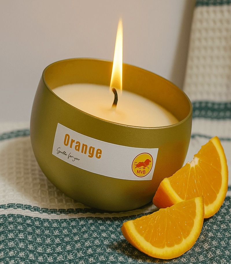MVB Vegan Organic Hand-Poured Soya Wax Candle –Perfumed with Revitalizing Orange Essential Oil