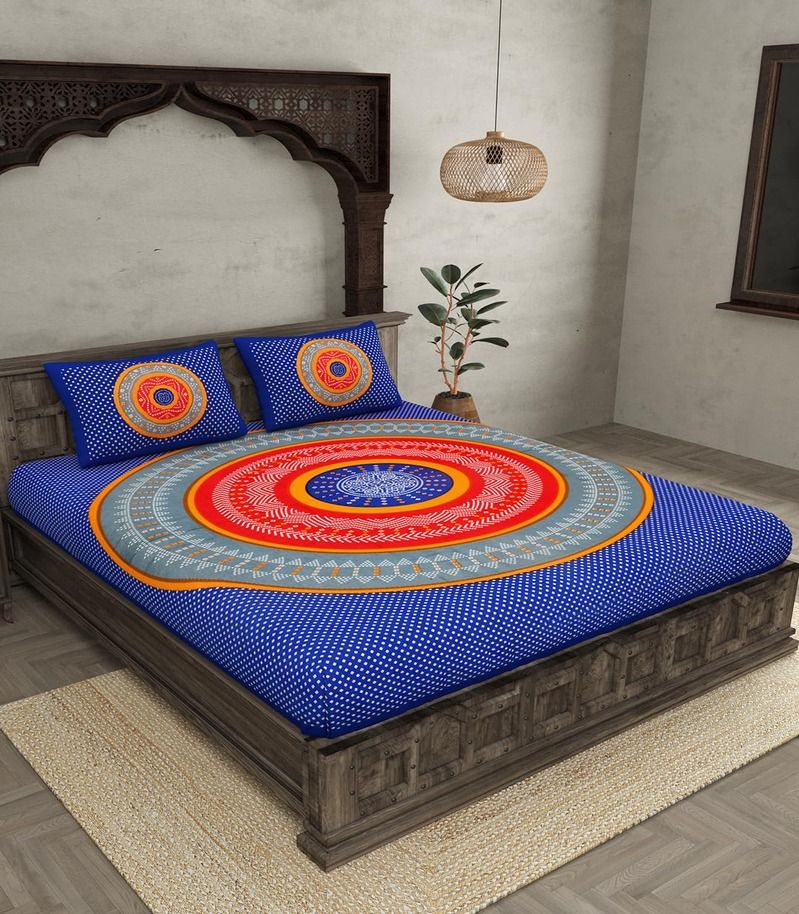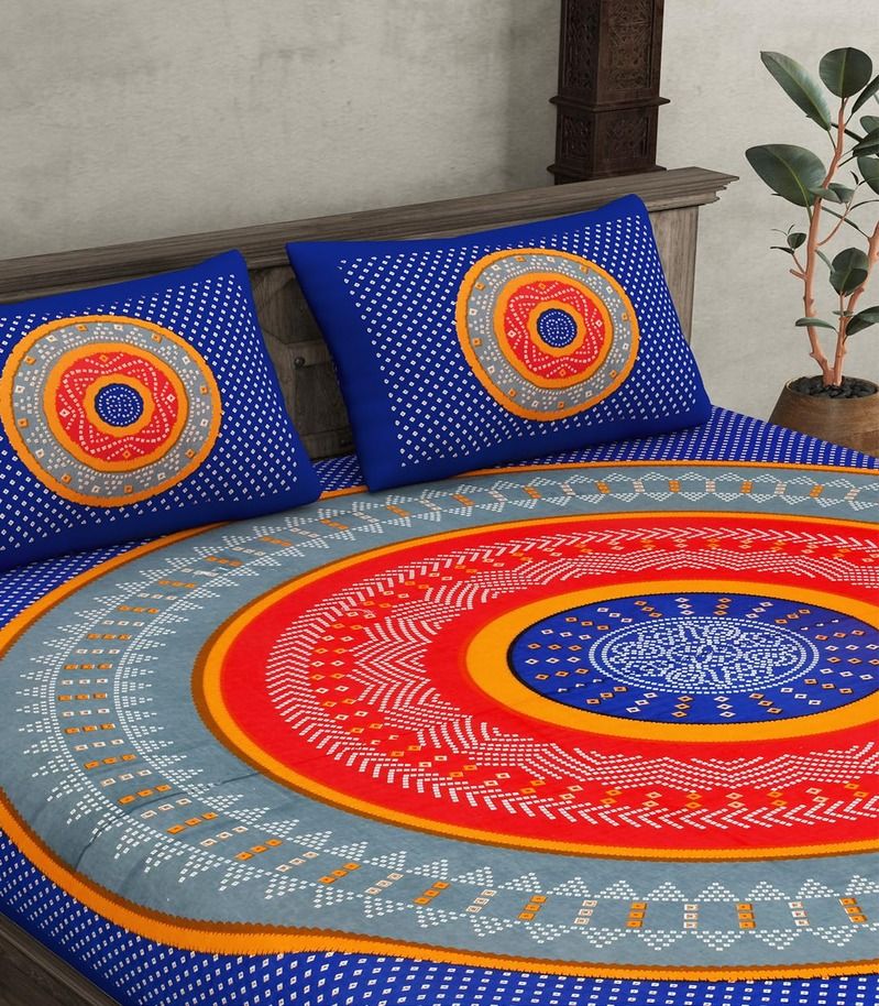 Turn your bedroom into a colorful oasis with this beautiful Cotton 210 TC Bandhej Print Bedsheet, specifically designed for double beds.
