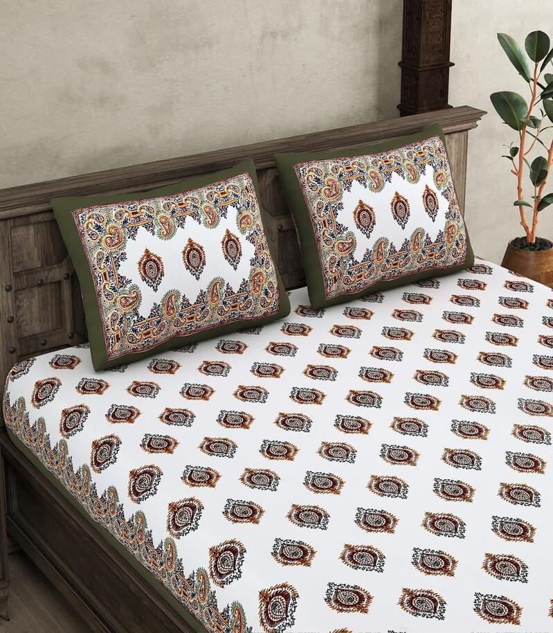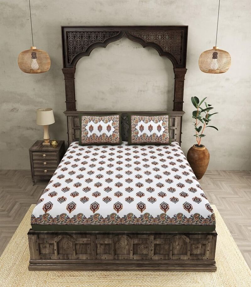 Add the classic charm of Indian block printing to your bedroom Premium Cotton Bedsheet Set.