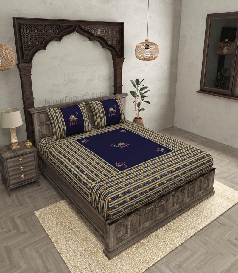 Give your bedroom a touch of tradition and artistic sophistication with this Embroidery Patch Work Sanganeri Print Double Bedsheet.