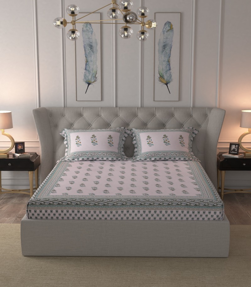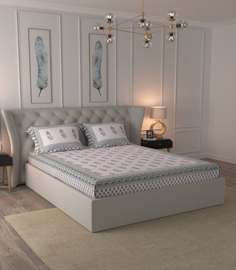 These bedsheets are perfect for each and every season, as they offer year-round breathability and comfort. Pure cotton is easy to care for, is very durable, and retains its softness and color after numerous washes. Create a paradise in your bedroom with the soothing beauty of the Whispering Green Pure Cotton Bedsheet and enjoy a heavenly sleep.